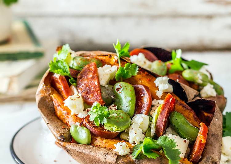 Połóż kostkę fety na kawałku folii i dalej piecz całość. Warto władając fetę przewrócić bataty na drugą stronę. Mniejsze bataty mogą być gotowe parę minut wcześniej. You can cook Pieczone bataty z bobem, fetą i kolendrą using 9 ingredients and 4 steps. Here is how you cook it.
