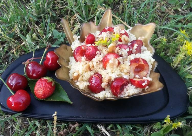 Kasza kuskus z truskawkami i czereśniami i miodem step by step