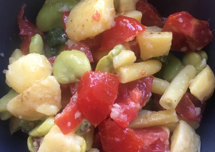 Polecamy wideo: Jak myć warzywa i owoce? Korzystając z końcówki sezonu na jedno z najlepszych warzyw strączkowych na świecie, połączyłam kilka pozornie niepasujących do siebie składników i na moim stole pojawiła się doskonała sałatka z bobem. Jestem przekonany, że sałatka z bobem Cię zainteresuje! You can have Sałatka z bobem i warzywami using 9 ingredients and 2 steps. Here is how you achieve it.