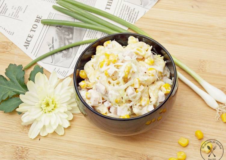 - Tortellini gotujemy według przepisu na opakowaniu. Polędwicę kroimy w małą kostkę, a pora dzielimy wzdłuż na 4 części i drobno kroimy. Kukurydzę odcedzamy z zalewy. Wszystkie składniki sałatki łączymy ze sobą. Do jogurtu dodajemy majonez, sporą ilość pieprzu białego i mieszamy. Gotowy sos dodajemy do sałatki i mieszamy, do połączenia się składników. Przed podaniem sałatkę chłodzimy w lodówce. Odnośniki * użyłam tortellini świeżych, nie suszonych.