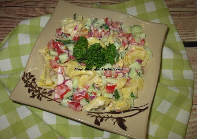 Ugotuj tortellini, posiekaj ogórka i szynkę, zetrzyj ser na grubych oczkach, dodaj kukurydzę majonez i dopraw do smaku, Smacznego! Sałatka z tortellini i warzyw. tortellini ogórek cebula fioletowa pomidory papryka rzodkiewki majonez Kielecki z czosnkiem sól cebulowa. Tortellini ugotować wg przepisu na opakowaniu i ostudzić. You can have Sałatka z tortellini i warzyw using 8 ingredients and 1 steps. Here is how you cook it.