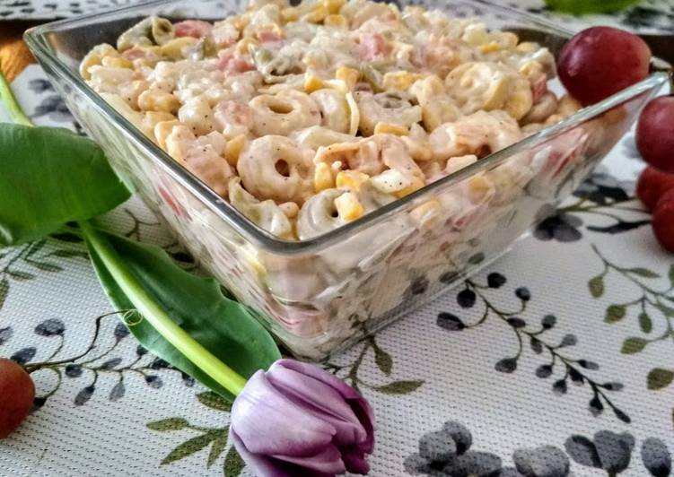 Szybka sałatka z makaronem tortellini, porem i szynką. Sałatki z tortellini świetnie nadają się zarówno na przekąskę w trakcie dnia jak też danie obiadowe. Polecamy spróbować przepis na lekka sałatkę z tortellini, szynką i pieczarkami. Dla tych, którzy sałatkę z tortellini chcą zjeść na lunch lub obiad, idealne będzie połączenie tortellini z kurczakiem i kukurydzą. Sałatka z tortellini i szynką to szybka i smaczna sałatka z makaronu tortellini, szynki, ogórka i pomidora.