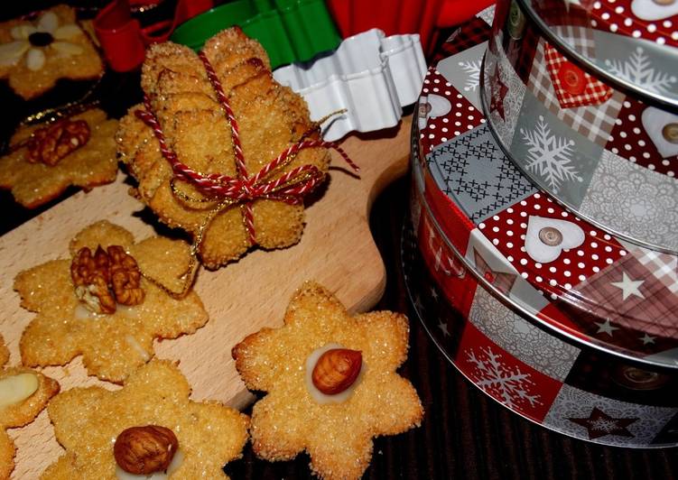 - Upieczone ciasteczka można dodatkowo udekorować. Orzeszki i migdały przyklejam do ciasteczek za pomocą odrobiny lukru..