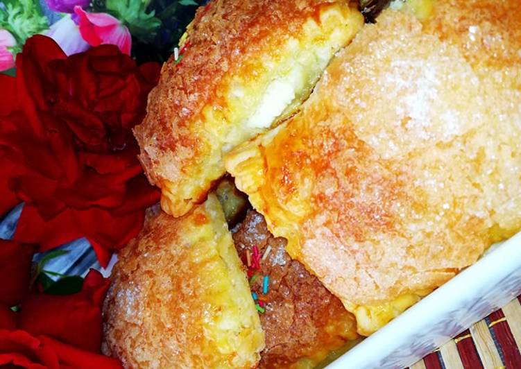 - Posmarować roztrzepanym jajkiem i obsypać obficie cukrem kryształ..