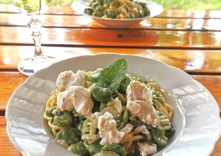 Ingredients of Spaghetti z bobem, miętą i kozim serem