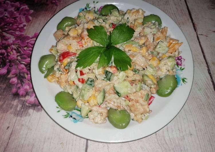Sałatka z kurczakiem i bobem step by step