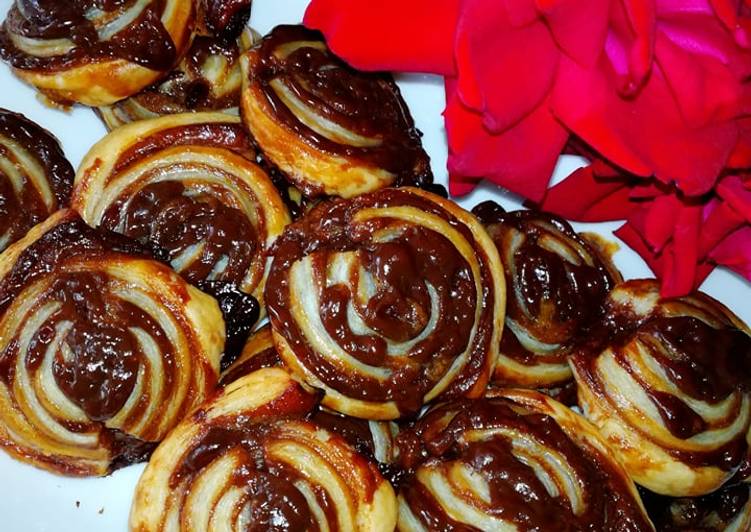 - Gotowe ciasto francuskie rozwinąć, posmarować masą..