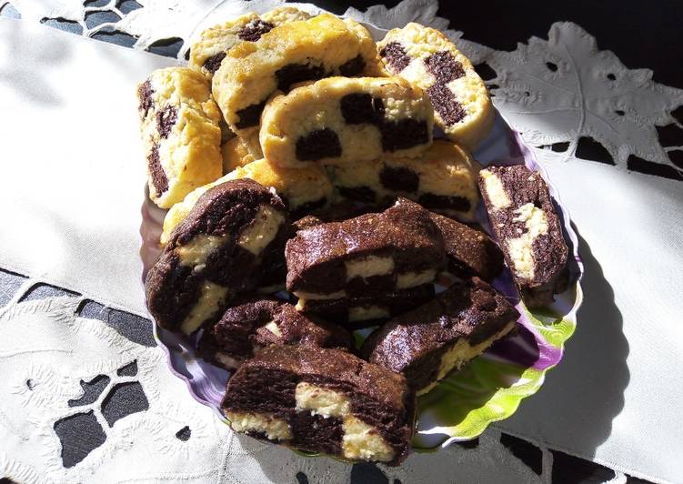 Projekt ten nie jest kosztowny i możesz. CIastka są kruche, delikatne i kakaowe - po prostu :). Klasyczne kruche ciasteczka w wersji "szachownice", mile zaskoczą najbliższych, szczególnie Upieczone ciasteczka przestudzić chwilę na blasze, następnie przełożyć na kratkę kuchenną i tam. You can have Ciasteczka szachownica using 9 ingredients and 12 steps. Here is how you cook it.