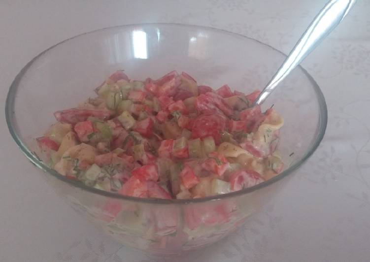 Sałatka z Tortellini. Sałatka z tortellini to jedna z sałatek, które powstały na życzenie moich Czytelników. Zdecydowałam się na lekki sos czosnkowy, mieszankę żółtego sera i szynki oraz dużo kolorowych i zdrowych warzyw. Pyszna i sycąca sałatka z makaronem nazywanym czasami "ślimaczkami" ;) czyli z makaronem tortellini.