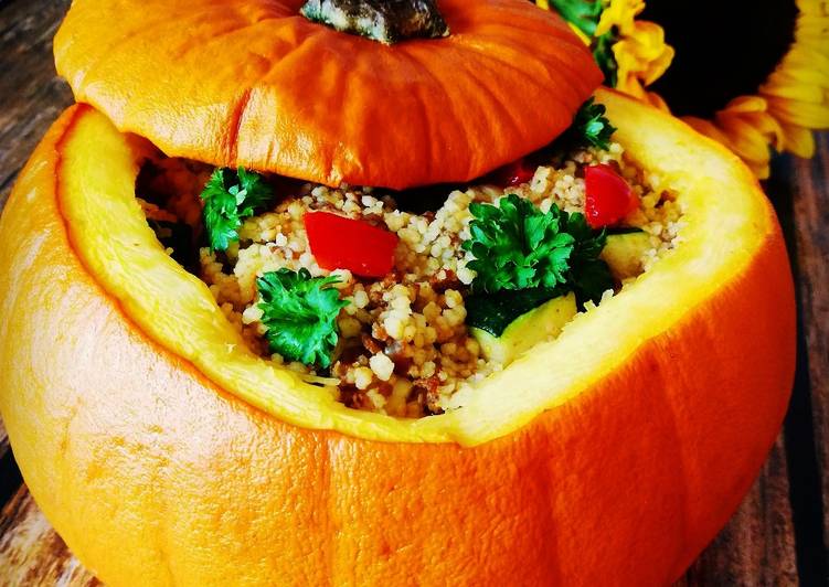 Dynia faszerowana mięsem mielonym oraz kaszą kuskus instructions